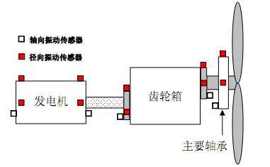 帶有加速度振動(dòng)傳感器的水平布置的風(fēng)力發(fā)電機(jī)組