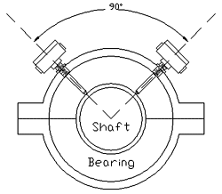 在更大,更關(guān)鍵的機(jī)器上,通常建議每個(gè)軸承使用兩(2)個(gè)接近探頭傳感器系統(tǒng)。此類(lèi)安裝的探頭應(yīng)彼此分開(kāi)90°安裝。由于探針將測(cè)量其各自平面中的振動(dòng),因此將測(cè)量軸頸軸承內(nèi)軸的總振動(dòng)。當(dāng)兩個(gè)接近探頭傳感器都連接到SKF-CM信息系統(tǒng)或示波器時(shí),可以看到兩個(gè)振動(dòng)信號(hào)的“軌道”或笛卡爾乘積。