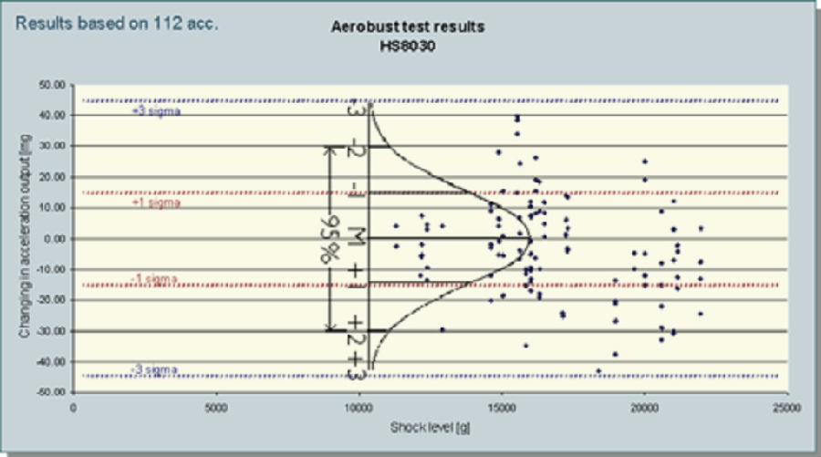 對加速度器最終的考驗是結(jié)合沙地軟著陸的155毫米榴彈實地發(fā)射測試。安裝在IMU的加速度計能成功承受住11’800g到19’500g的沖擊力。對發(fā)射過程中最高沖擊力,加速度傳感器表現(xiàn)出良好的耐受性和極小的偏離。