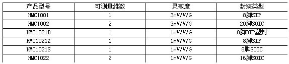 表1 HMC系列磁阻傳感器的主要型號(hào)