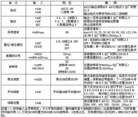 表2 HMR系列智能磁阻傳感器輸入命令集