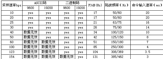 對(duì)于不同的輸出采樣速率,參數(shù)選擇也有所不同,表3所列為HMR2300的參數(shù)選擇表。