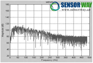 從圖中還可以看出,動圈式傳感器噪聲在80dB以下,壓阻式傳感器噪聲在80dB附近,略高于動圈式。在信噪比方面,壓阻式比動圈式高約6dBv,即相差約一倍。
