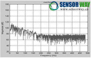 從圖3、圖4上可明顯的看出二者的差別。壓阻式振動加速度傳感器在300Hz內(nèi)的通頻帶內(nèi)平坦、線信度 好,能真實地反應(yīng)振動信號的大;而動圈式振動加速度傳感器的帶寬不足300Hz,且通頻帶極不平坦, 線信度不好,放大后,反映的是畸變的振動信號。動圈式振動加速度傳感器已無法采集100Hz以上的振動 信號,后面的幅頻特性圖對比更能說明這一點。