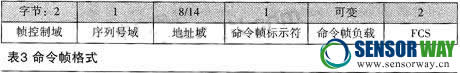 (3) 命令幀:用于組建無線傳感器網(wǎng)絡(luò)、傳輸同步數(shù)據(jù)等。命令幀在格式上和其他類型的幀沒有太多的區(qū)別,其結(jié)構(gòu)如表3所示。