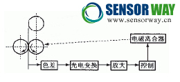 圖1 帶材跑偏檢測(cè)器工作原理