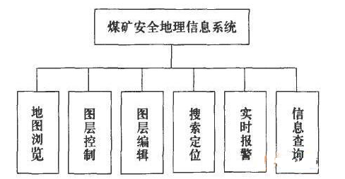圖 3 煤礦安全地理信息系統(tǒng)功能模塊圖