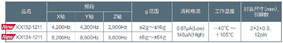 KX132-1211可檢測(cè)的頻段高達(dá)4,200Hz、加速度(g)范圍寬達(dá)±2g~±16g,高端產(chǎn)品KX134-1211可檢測(cè)的頻段高達(dá)8,500Hz、加速度(g)范圍寬達(dá)±8g~±64g。另外,相比以往產(chǎn)品最高85℃的工作溫度,這兩款產(chǎn)品在高達(dá)105℃的環(huán)境下也可正常工作。產(chǎn)品陣容不僅支持高溫工作,而且支持的頻率和加速度檢測(cè)范圍廣,因此非常適用于工業(yè)設(shè)備的電機(jī)振動(dòng)分析等機(jī)器健康監(jiān)測(cè)用途。