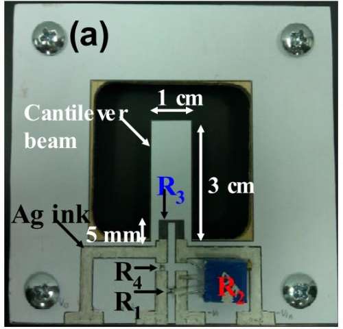 將傳感器畫在放在電子秤上的紙上,以便為每個鉛筆畫出的傳感器測量并保持一致的畫力。然后將圖紙粘貼在印刷電路板(PCB)板上,并在每個PCB板上安裝一個應變儀。然后,Kang使用四點彎曲技術將應力循環(huán)施加到傳感器上,并通過電路在施加的應力下測量傳感器的電壓變化。