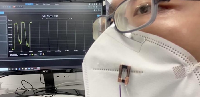 為解決這一挑戰(zhàn),劍橋大學(xué)的研究人員開發(fā)了一種新的打印方法,該方法可用于制造非接觸式,可穿戴,便攜式呼吸傳感器,該傳感器高度靈敏且生產(chǎn)成本低廉。它們還可以連接到諸如智能手機之類的電子設(shè)備上,以同時收集呼吸模式信息,聲音和圖像。