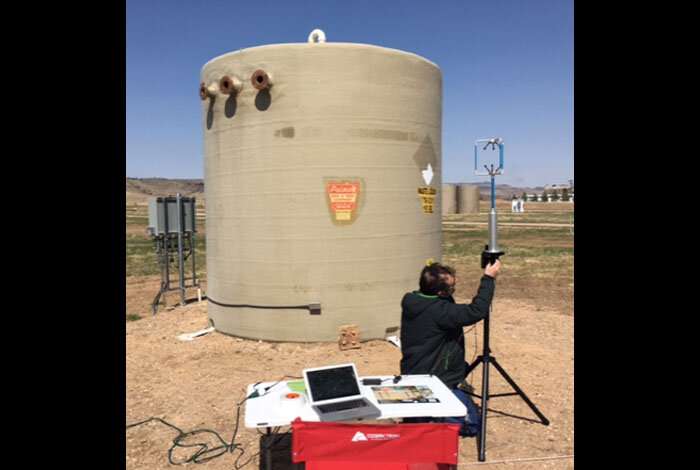在盲人測試期間,ALFaLDS在科羅拉多州柯林斯堡的模型石油和天然氣測試設施中部署。圖片提供:洛斯阿拉莫斯國家實驗室