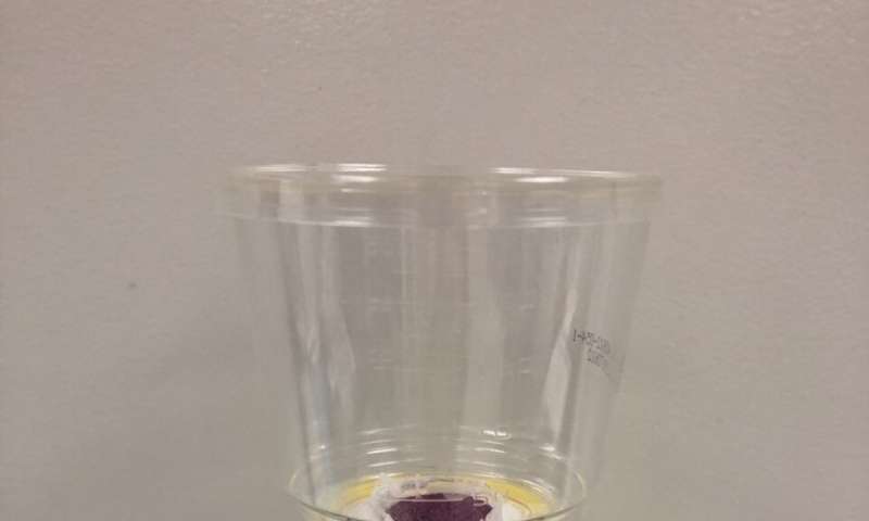 用于檢測(cè)牛奶中揮發(fā)性化合物的實(shí)驗(yàn)裝置,在液體上方可以看到粉紅色的納米顆粒。