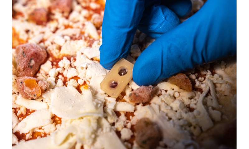 在最后一步中,該團(tuán)隊(duì)將所有部件放在一塊蜂蠟中,將溫度激活和指示劑溶液保存在不同的腔室中,并證明自供電設(shè)備可用于冷凍食品監(jiān)測。研究人員表示,他們的概念驗(yàn)證傳感器為可食用材料用于廉價(jià)、安全的技術(shù)鋪平了道路,這些技術(shù)可以提醒客戶注意冷凍產(chǎn)品的儲(chǔ)存歷史。