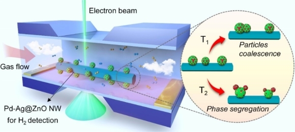 圖1.采用MEMS芯片氣相原位TEM技術(shù)揭示氫氣傳感器失效機(jī)制的示意圖