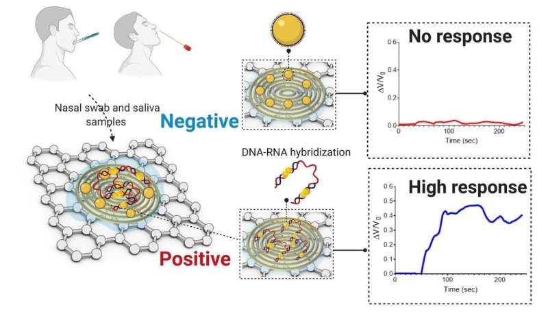 該團隊通過使用 COVID-19 陽性和陰性樣本測試了該傳感器的性能。與陰性樣本相比,傳感器顯示陽性樣本的電壓顯著增加,并在不到五分鐘的時間內(nèi)確認了病毒遺傳物質(zhì)的存在。此外,該傳感器能夠區(qū)分這些樣品中的病毒RNA載量。病毒載量是感染進展的重要定量指標,也是使用現(xiàn)有診斷方法測量的挑戰(zhàn)。