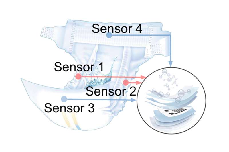 該團(tuán)隊(duì)還在尿布的吸收層之間集成了四個濕度傳感器,以創(chuàng)建一個“智能尿布”,能夠檢測濕度并提醒變化。