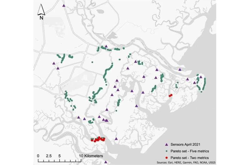 在佐治亞州查塔姆縣的一個(gè)測試案例中,土木工程師Iris Tien開發(fā)的方法將29,000個(gè)潛在的傳感器位置減少到381個(gè)。因此,官員們可以利用他們的專業(yè)知識(shí)和歷史知識(shí)來選擇在這些地方安裝傳感器的位置。