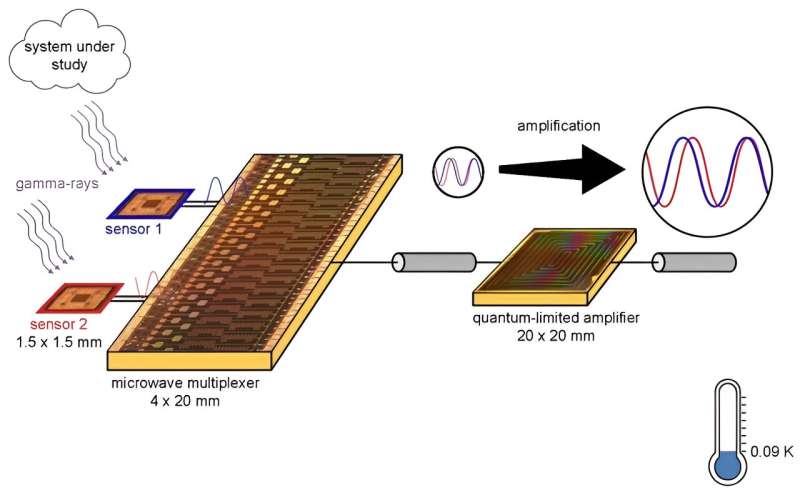 超導(dǎo)傳感器在非常低的溫度(約0.09開(kāi)爾文)下工作,因此它們需要專(zhuān)門(mén)的讀出電子設(shè)備和放大器。這些放大器需要將來(lái)自多個(gè)傳感器的信號(hào)組合在一條讀出線(xiàn)上。組合信號(hào)稱(chēng)為多路復(fù)用。