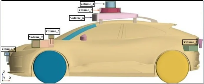 為前傳感器、前側(cè)傳感器、車頂傳感器和后側(cè)傳感器設(shè)置了變形控制體,這些傳感器對(duì)空氣動(dòng)力阻力系數(shù)有顯著影響。通過調(diào)整這些控制體上的控制點(diǎn),可以改變傳感器的形狀。 圖片來源:王逸平