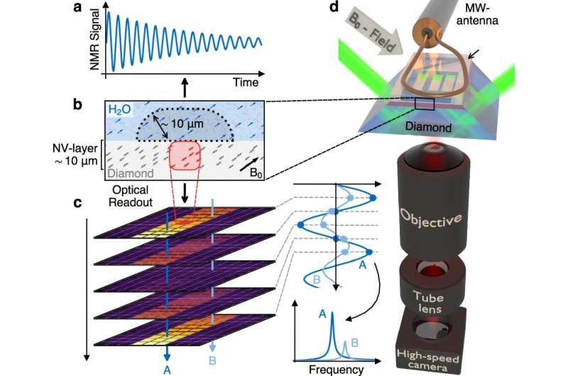 光學(xué)寬場核磁共振顯微鏡的基本原理圖片來源:《自然通訊》(2025 年)。DOI: 10.1038/s41467-024-55003-5