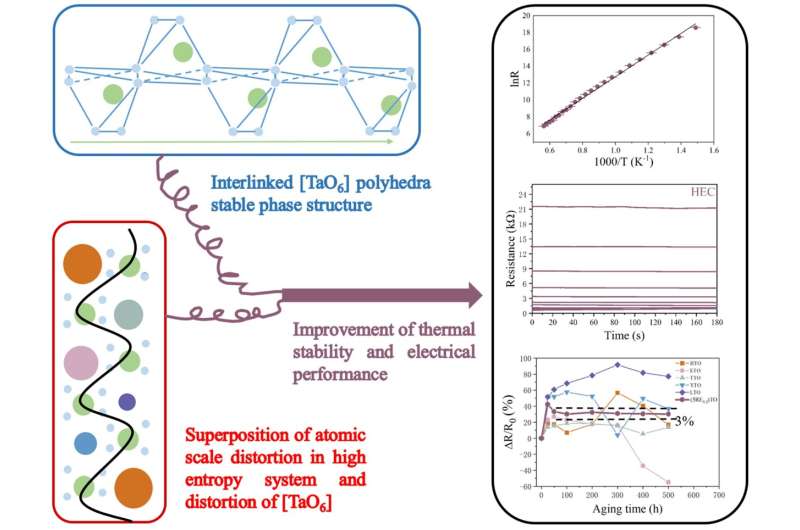 為解決這一問題,中國科學院新疆理化技術(shù)研究所(XTIPC)的研究團隊采用高熵策略開發(fā)出一種稀土鉭酸鹽(RETaO₄)熱敏陶瓷。他們的研究成果發(fā)表在《材料化學 A》期刊上。