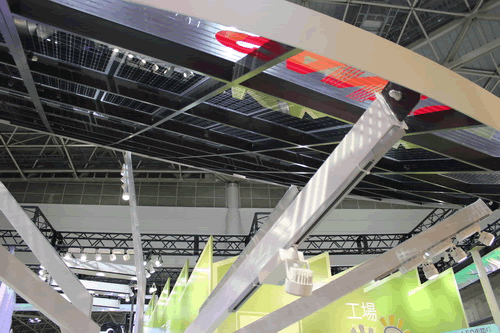 在公共區(qū)域整體展示區(qū),展示了太陽能充電站“Solalib”、鋰離子太陽能路燈、太陽能停車場等。其中Solalib的理念十分先進,通過太陽能電池發(fā)電,可以為電動能源車充電,還可以把電能通過先進的鋰離子電池儲存下來。