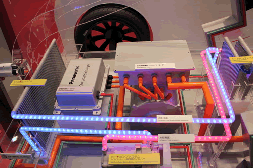 看看這是什么?是一臺透明外殼的電動概念車,兩個后輪中間的就是松下的鋰離子電池