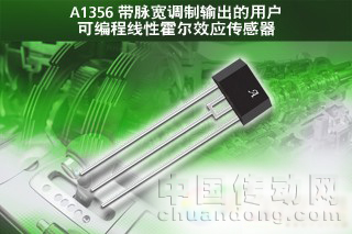 A1356 是一款帶脈寬調(diào)制 (PWM) 集電極開路輸出的高精度用戶可編程線性霍爾效應(yīng)傳感器。PWM 輸出信號(hào)的占空比 (DC)(信號(hào)頻率:2 kHz)與施加的磁場(chǎng)成正比例。A1356 裝置能通過(guò)其內(nèi)置霍爾傳感器元件將模擬信號(hào)轉(zhuǎn)換為數(shù)字編碼 PWM 輸出信號(hào)。數(shù)字編碼 PWM 輸出的耦合抗擾性遠(yuǎn)遠(yuǎn)超出了模擬輸出信號(hào)的抗擾性,尤其是當(dāng)信號(hào)需要在系統(tǒng)內(nèi)進(jìn)行長(zhǎng)距離輸送時(shí)。