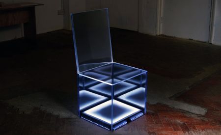 這把被設(shè)計師賦予了“隱身”功能的座椅將于2月份在英國皇家藝術(shù)學(xué)院展出,它向人們展示了一種依附于意識形態(tài)的設(shè)計理念。椅子的“隱身”功能依靠貼有單向鏡膜的鏡面有機(jī)玻璃實現(xiàn),這些有機(jī)玻璃可以有效地反射出周圍環(huán)境,讓椅子看上去如同懸空一樣。除此之外,設(shè)計者還在座椅內(nèi)部加裝了超聲傳感器與LED照明燈,當(dāng)傳感器探測到有人靠近時,便向LED燈發(fā)出脈沖信號,燈便會如心跳般閃爍,與此同時,座椅下表面會逐漸變透明,邊緣也會泛起藍(lán)光。當(dāng)傳感器“確認(rèn)”有人要上座時,LED燈才會停止閃爍。高科技的支持和新穎的設(shè)計讓這款座椅極具夢幻效果,十分吸引人。