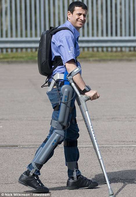 據(jù)英國《每日郵報(bào)》報(bào)道,ReWalk設(shè)備包括裝配發(fā)動(dòng)機(jī)的腿部支架,傳感器,裝有電腦控制器和電池的黑色背包及一支幫助身體平衡的拐杖。穿上這條機(jī)器褲后,所有動(dòng)作完全由用戶控制,用戶可通過手腕上的遙控腕帶發(fā)出站、坐、行,蹲等命令,身體前傾以激活身體傳感器,機(jī)械腿就可以行走了。停下來也非常簡單,只需要直起身體。