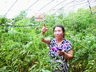 王麗珍對(duì)記者說(shuō),植物病蟲害的發(fā)生幾率與大棚內(nèi)的溫度和濕度有著密切的關(guān)系,往往最難控制的就是溫濕度。這回好了,有了高科技的傳感器,她可以隨時(shí)隨地掌握、調(diào)節(jié)棚內(nèi)溫濕度,不僅增加了蔬菜產(chǎn)量還大大減少了蔬菜的藥物殘留。