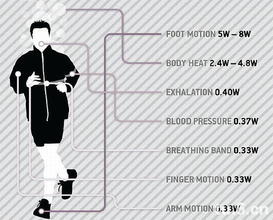 這套東西各自為政,每個(gè)部分都相對(duì)獨(dú)立的,戴它們在身上,它們獨(dú)立的能量收割器將人體熱量轉(zhuǎn)換成電能,并儲(chǔ)存起來,供監(jiān)測儀用電。