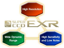 富士數碼相機的研發(fā)人員找到了一個兩全其美的排列方法。他們摒棄了傳統的矩陣形排列,自行研發(fā)開創(chuàng)了另一種CCD的陣列,即:光敏元件八角型蜂窩狀排列,這種陣列不僅將傳統的像素橫向排列變?yōu)樾毕蚺帕,還將相同顏色的像素對排列在一起。既增加了單位面積內像素數量,又保證了相機的高感光度。富士數碼相機從此進入了Super CCD EXR時代。