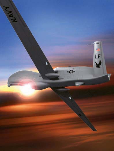 美國海軍的廣域海上監(jiān)視系統(tǒng)無人機是由空軍“全球鷹”無人機改裝而來,為海軍在全世界實施持續(xù)的情報、監(jiān)視與偵察。