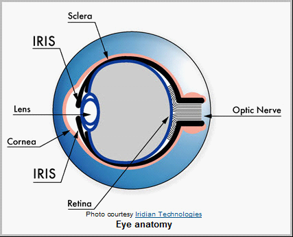 如圖A所示(來自howstuffworks.com,由虹膜技術(shù)提供),虹膜是眼睛中帶顏色的部分。對于個(gè)人來說,它就象視網(wǎng)膜或指紋一樣是獨(dú)一無二的。與視網(wǎng)膜位于眼睛后部,需要更深入的掃描不同,虹膜掃描很容易,利用簡單的相機(jī)技術(shù)就可以完成。