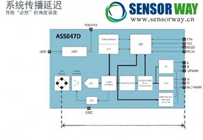 傳統(tǒng)磁性旋轉(zhuǎn)位置傳感器芯片需要將其嵌入式磁性元件中磁場(chǎng)強(qiáng)度的原始測(cè)量信息轉(zhuǎn)換為數(shù)字角度測(cè)量結(jié)果,這樣會(huì)導(dǎo)致傳播延遲。延遲期間,由于離心器的角位移發(fā)生變化,當(dāng)數(shù)字輸出時(shí),其實(shí)際位置與傳感器所測(cè)量的位置將會(huì)產(chǎn)生誤差。
