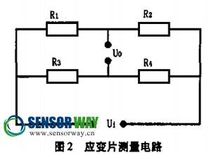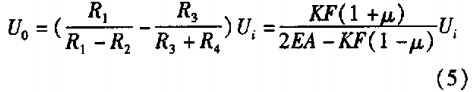 當(dāng)采用圖2所示的全橋差動電路進行測量時,輸出電壓為: