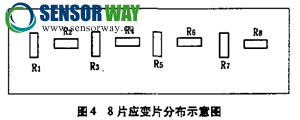 釆用8片應(yīng)變片組成應(yīng)變式測力傳感器,相比4片應(yīng)變片組成的電橋結(jié)構(gòu),可提高靈敏度1倍左右,還可以提髙傳感器測量的線性特性。