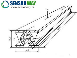 石英晶體敏感元件及壓電石英稱(chēng)重傳感器在動(dòng)態(tài)公路車(chē)輛稱(chēng)重中的應(yīng)用主要有兩種方式。一種是利用多個(gè)墊圈式壓電石英稱(chēng)重傳感器組裝成薄形電子輪重、軸重秤或條形稱(chēng)重板。一種是利用多個(gè)石英晶體片和電極板直接安裝在特制的梁式承載器內(nèi),形成專(zhuān)用的壓電石英稱(chēng)重傳感器,將其埋在公路表面截面為50×50mm的長(zhǎng)槽內(nèi),形成動(dòng)態(tài)公路車(chē)輛軸重秤。瑞士Kastler(奇石樂(lè))公司研制的石英晶體動(dòng)態(tài)稱(chēng)重傳感器就是這種應(yīng)用的典型代表。它的總體結(jié)構(gòu)如同1m長(zhǎng)的工字梁,所不同的是工字梁的腹板為圓形空心截面,實(shí)際上其空心是由平行于工字梁上下翼緣的兩個(gè)平面形成的矩形通孔,它的結(jié)構(gòu)如圖6所示。