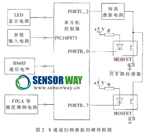 隨著現(xiàn)代電子讀數(shù)儀技術(shù)、材料及生產(chǎn)工藝的發(fā)展,振弦式儀器技術(shù)也不斷得以完善,成為新一代工程儀器的潮流,被廣泛應用在建筑物基礎(chǔ)、大壩、橋梁、公路、核電站的水泥外殼等需要對受力、位移、微裂縫的測量中,還可以作為電子秤、皮帶秤、汽車秤等的關(guān)鍵傳感器。為了準確測量應力、應變的變化,除了要研究振弦式傳感器的材料特性外,還必須解決振弦傳感器的激振和測頻讀數(shù)技術(shù)。為此,本文對振弦式傳感器的激振技術(shù)和測頻讀數(shù)技術(shù)展開了研究,介紹了基于PIC16F873單片機內(nèi)比較輸出模式的多路振弦傳感器的掃頻激振技術(shù)。
