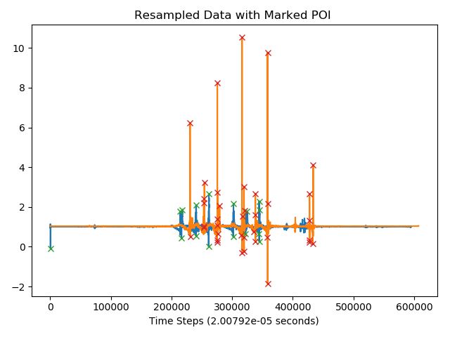 圖3:記錄已重新采樣,并且其“興趣點(diǎn)”在圖上標(biāo)有“ X”。這些點(diǎn)旨在捕獲在兩個(gè)信號中都已記錄的主要“事件”