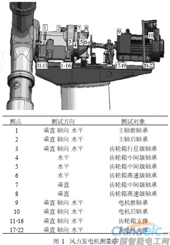 現(xiàn)場測量點的布置對于風(fēng)力發(fā)電機(jī)在線監(jiān)測和診斷系統(tǒng)來說一直是個難題,至今也沒有得到很好的解決,F(xiàn)場測量點選擇的不同,對于監(jiān)測系統(tǒng)信號分析具有很大的影響。不同的布置方案,得到的結(jié)果不盡相同。