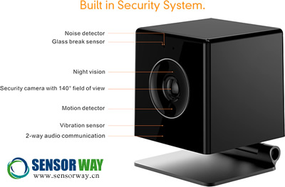 有了Oomi Cube,你可以把一個攝像頭作為智能家居環(huán)境的中心。這個小小的攝像頭作為監(jiān)控中心配有噪聲檢測器(麥克風)、玻璃破碎傳感器、夜視器、動作檢測器、振動傳感器(很可能是加速計)和雙向音頻通信器(除了麥克風還有揚聲器)。