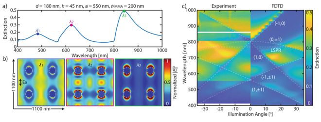 “非常有趣的是,我們的優(yōu)化結(jié)果表明,氫氣傳感器的靈敏度不是僅由表面晶格共振的窄消光光譜 實(shí)現(xiàn)的,而是通過具有較窄光譜和納米顆粒之內(nèi)的、足夠大的場(chǎng)增強(qiáng)之間的平衡陣列來實(shí)現(xiàn)的。這個(gè)發(fā)現(xiàn)使我們對(duì)等離子體光學(xué)傳感器的機(jī)理有了新的理解!卑仄急硎。