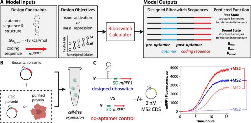 該技術(shù)是無細胞表達系統(tǒng)和稱為核糖開關(guān)的工程化基于RNA的傳感器的組合。無細胞表達系統(tǒng)包含讀取DNA和產(chǎn)生蛋白質(zhì)的細胞機制,但它們不受細胞膜的限制,允許大塊蛋白質(zhì)自由進入。
