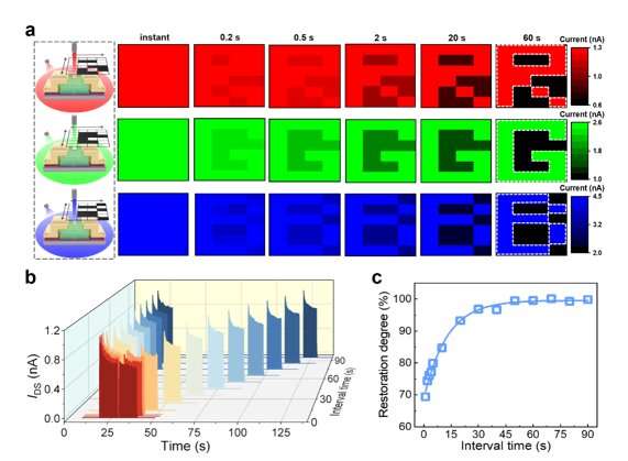 該設(shè)備可以在自供電模式下運(yùn)行,并表現(xiàn)出良好的人眼適應(yīng)行為,包括寬帶光敏圖像適應(yīng)(從紫外線到近紅外),近乎完全的光敏恢復(fù)(99.6%)和協(xié)同視覺(jué)適應(yīng),鼓勵(lì)智能光傳感器和機(jī)器視覺(jué)系統(tǒng)的進(jìn)步。