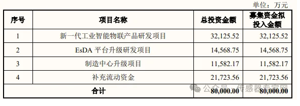 本次IPO中,致遠(yuǎn)電子擬向社會(huì)公眾公開 發(fā)行人民幣普通股不超過 2,000.00 萬股,擬募集資金為8億元,將投入到新一代工業(yè)智能物聯(lián)產(chǎn)品研發(fā)項(xiàng)目 、EsDA 平臺(tái)升級(jí)研發(fā)項(xiàng)目、制造中心升級(jí)項(xiàng)目以及補(bǔ)充流動(dòng)資金。