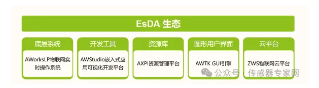 值得一提的是,致遠(yuǎn)電子是國內(nèi)少數(shù)自建物聯(lián)網(wǎng)操作系統(tǒng)及開發(fā)生態(tài)的中國物聯(lián)網(wǎng)企業(yè),其物聯(lián)網(wǎng)生態(tài)稱為EsDA生態(tài)(Embeded system Design Automation,嵌入式系統(tǒng)設(shè)計(jì)自動(dòng)化技術(shù)生態(tài)),包括AWorksLP 物聯(lián)網(wǎng)實(shí)時(shí)操作系 統(tǒng)、AWStudio 嵌入式應(yīng)用可視化開發(fā)平臺(tái)、AXPI 資源管理平臺(tái)、AWTK GUI 引擎及ZWS物聯(lián)網(wǎng)云平臺(tái)等自研技術(shù)平臺(tái):