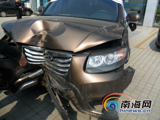 據(jù)車主王先生向南海網(wǎng)記者反映,這輛韓國(guó)現(xiàn)代越野車是他去年4月份在海南韓現(xiàn)汽車銷售公司購(gòu)買的,車身價(jià)就達(dá)26萬(wàn)元。本月15日,王先生在海口市龍昆南路駕車時(shí)為了避讓電動(dòng)車而重重撞上了綠化帶的一株椰子樹。