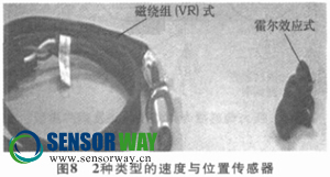 速度與位置傳感器是電控發(fā)動(dòng)機(jī)上用于檢測(cè)發(fā)動(dòng)機(jī)運(yùn)行速度和凸輪軸位置的傳感器。常用的有2種不同形式的速度傳感器: 磁繞組(VR) 式和霍爾效應(yīng)式, 如圖8所示。